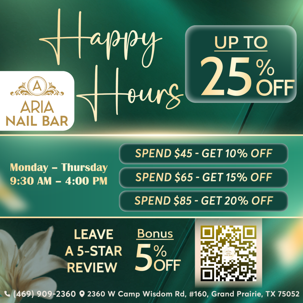 Aria Manicure Renew your hands with our signature manicure service: soaking in mineral sea salt, cuticle and nail grooming, sea scrub, fresh citrus slice massage, shoulder and head rub, hot stone, hot towel wrap, cream mask, and a 15-minute massage to relieve tension and stress. (Finish with polish of your choice.) Add collagen gloves for $10 to complete your experience. | $50 | $51.25 |